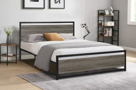 Our platform bed boasts a bold and contemporary design with its sharp lines, metal frame, and distinctive distressed grey wood finish. It’s not just a bed; it’s a work of art.