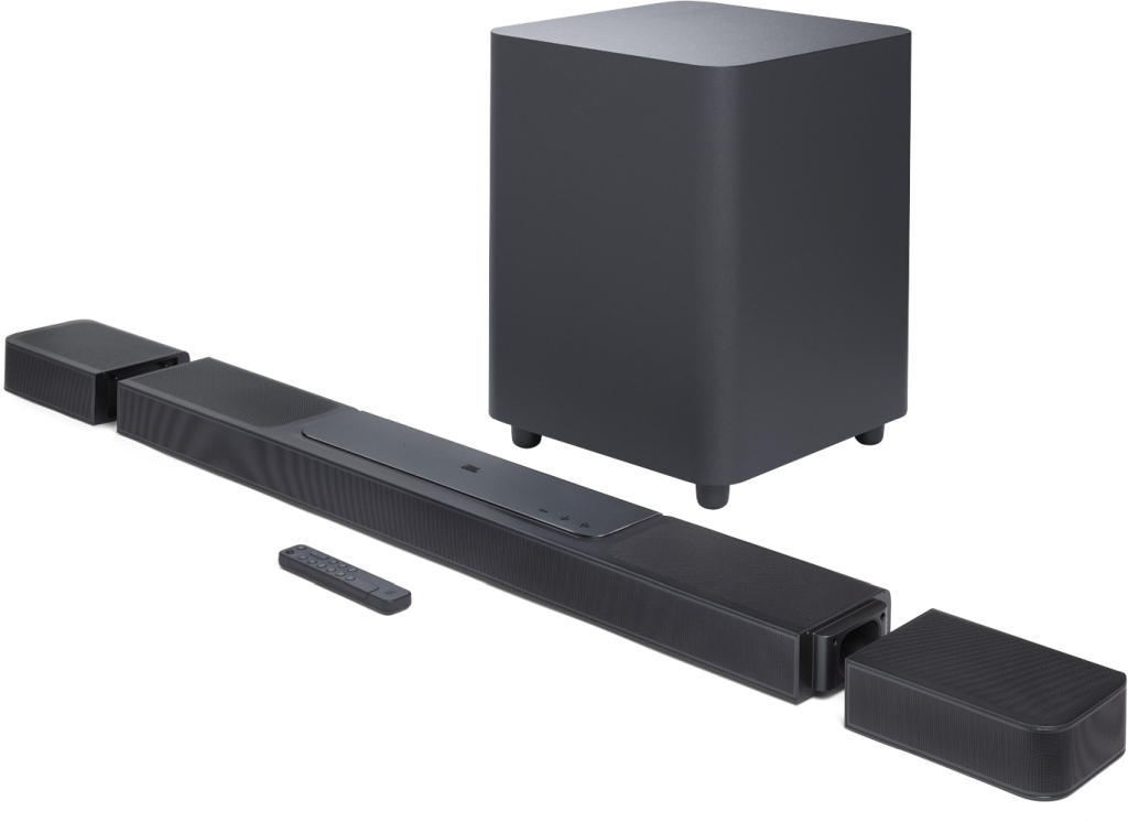 Immerse yourself in theater-quality 3D sound. With four up-firing drivers in the main bar and two more in the detachable speakers, the JBL Bar 1300X delivers true Dolby Atmos® and DTS:X together with MultiBeam™ for an enhanced 3D surround sound experience.