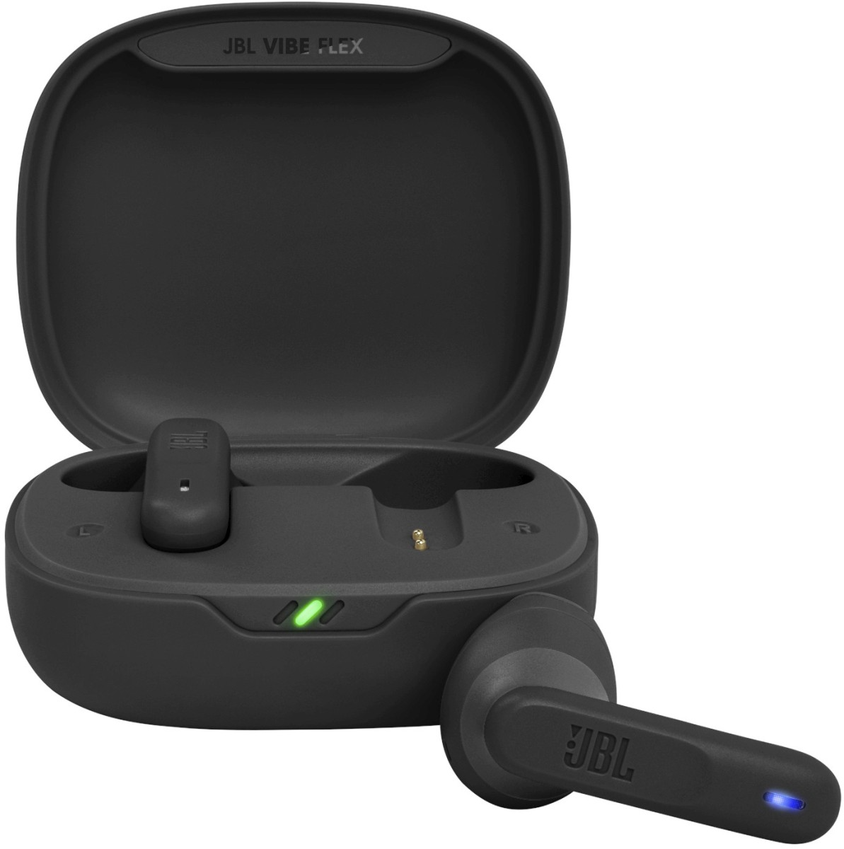 Bring your sound everywhere. With bass you can feel, up to 32 total hours of battery life, and a secure, comfortable stick-open design, the splash and dust resistant JBL Vibe Flex are designed for your daily entertainment.Read More