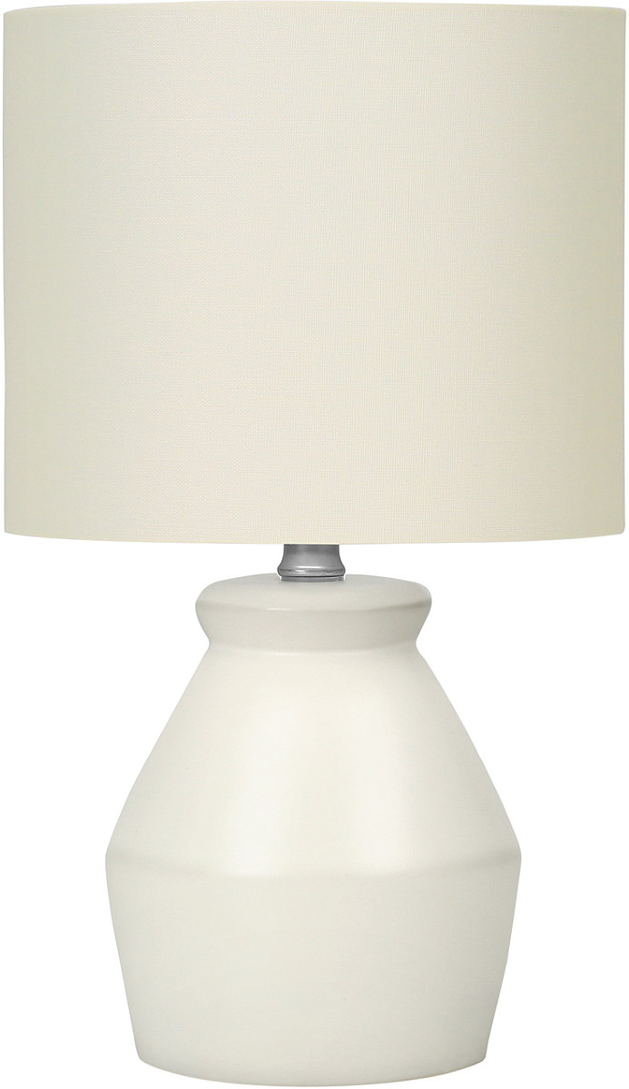 Freshen up a side or end table, or bedside table with this simple, modern style 17"H table lamp designed with a chic angular cream ceramic base and topped with a ivory linen drum shade.Read More