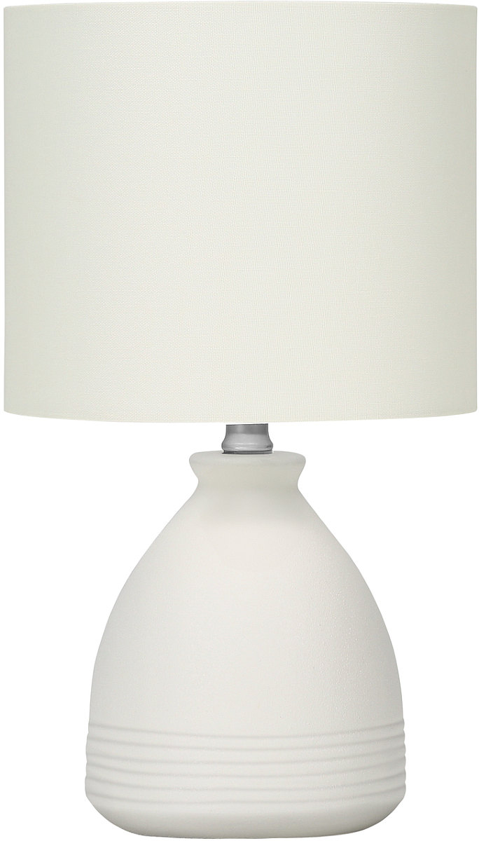 Rejuvenate a side or end table, or bedside table with this simple, modern style 17"H table lamp designed with a cream ceramic beehive base accented with groove lines, and topped with a ivory fabric drum shade.Read More