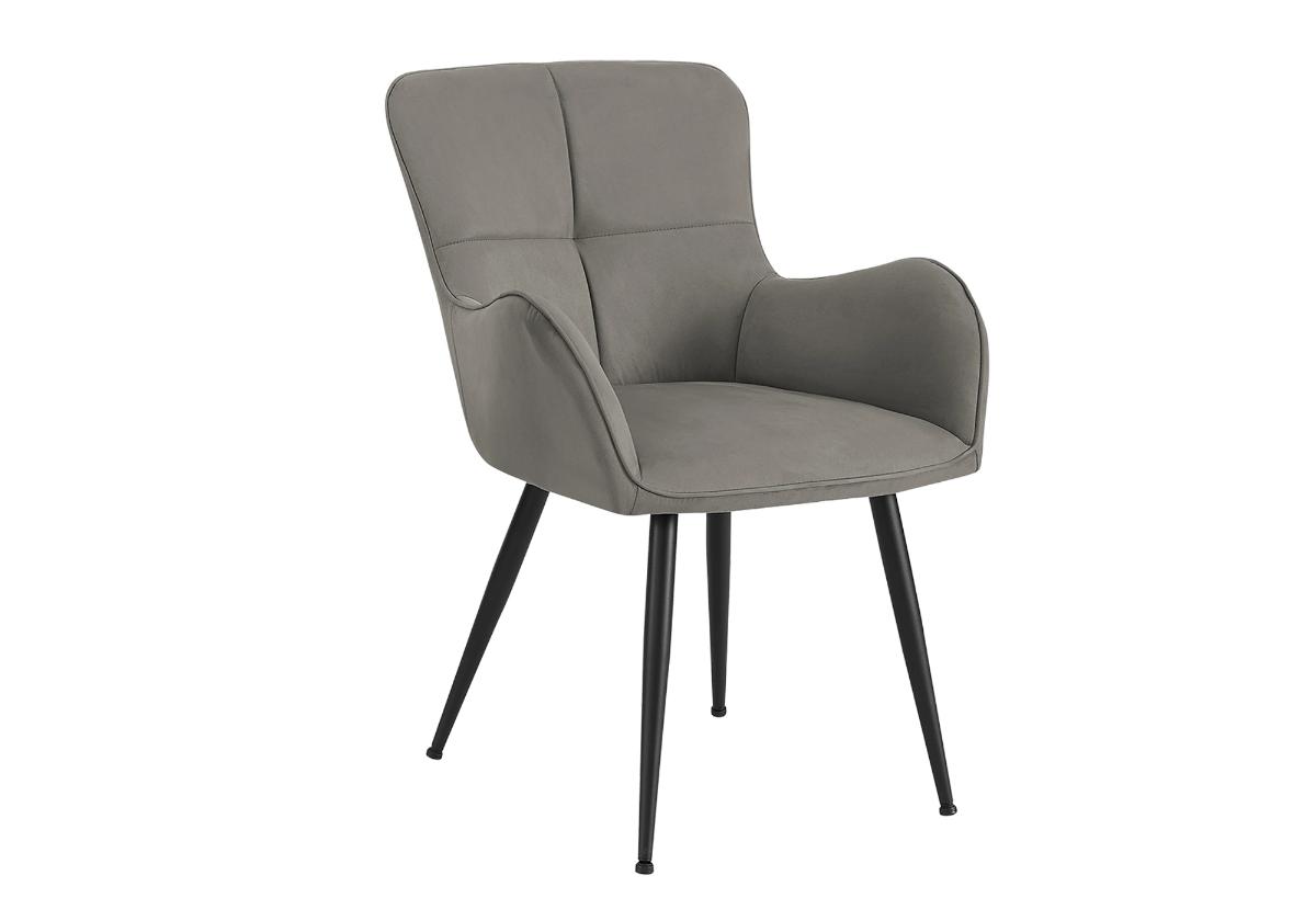 Crafted with a sleek grey suede-look upholstery, these chairs fit seamlessly into contemporary kitchens or dining rooms. Built for durability, our sturdy construction features chic black metal legs that not only provide a robust foundation but also impart a retro-modern aesthetic. The cushioned foam seats and tufted padded back and sides provide hours of comfortable seating whether hosting guests or enjoying a cozy family meal. These easy to assemble chairs, with illustrated instructions and all hardware included, are a breeze to setup so you can enjoy your refreshed dining area in no time. Plus, with our trustworthy 2-year limited warranty against manufacturer defects, you can relax knowing you are making a wise investment in your home with fashionable style!