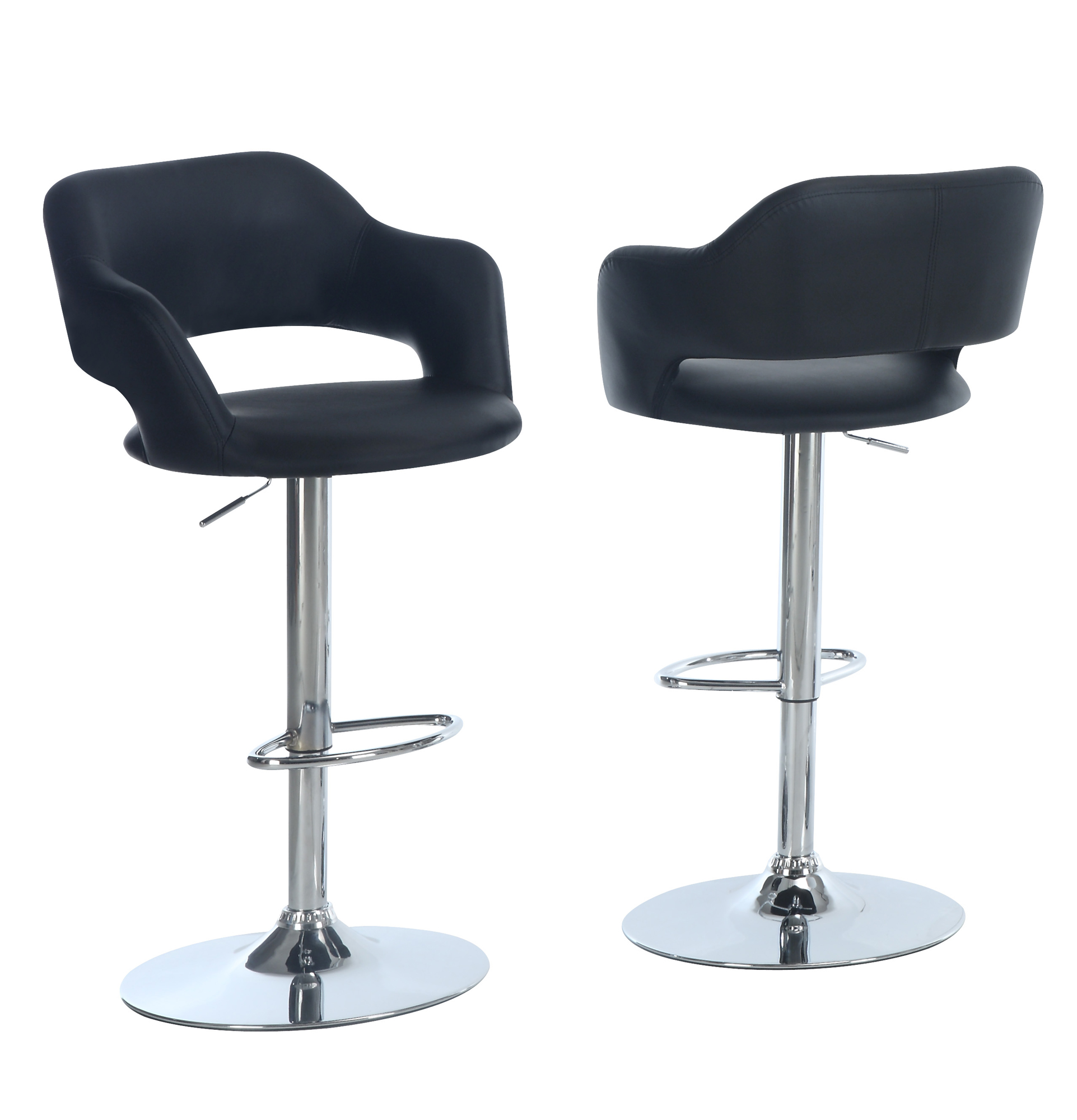Against the home bar or counter, this bar chair will be the perfect spot for weekday breakfasts, tasty Sunday brunches or get together with friends and family. With an ergonomic curved seat back design, the black leather look seat has sufficient padding and a footrest on the chrome metal base for extra comfort. Adjust the seat from 25 to 30 inches with the hydraulic lift mechanism, or swivel the chair's pedestal base 360 degrees. Perfect for hosting a group of friends or family in your kitchen, games room or elsewhere, this bar stool is as stylish as it gets. Includes 1 bar chair.