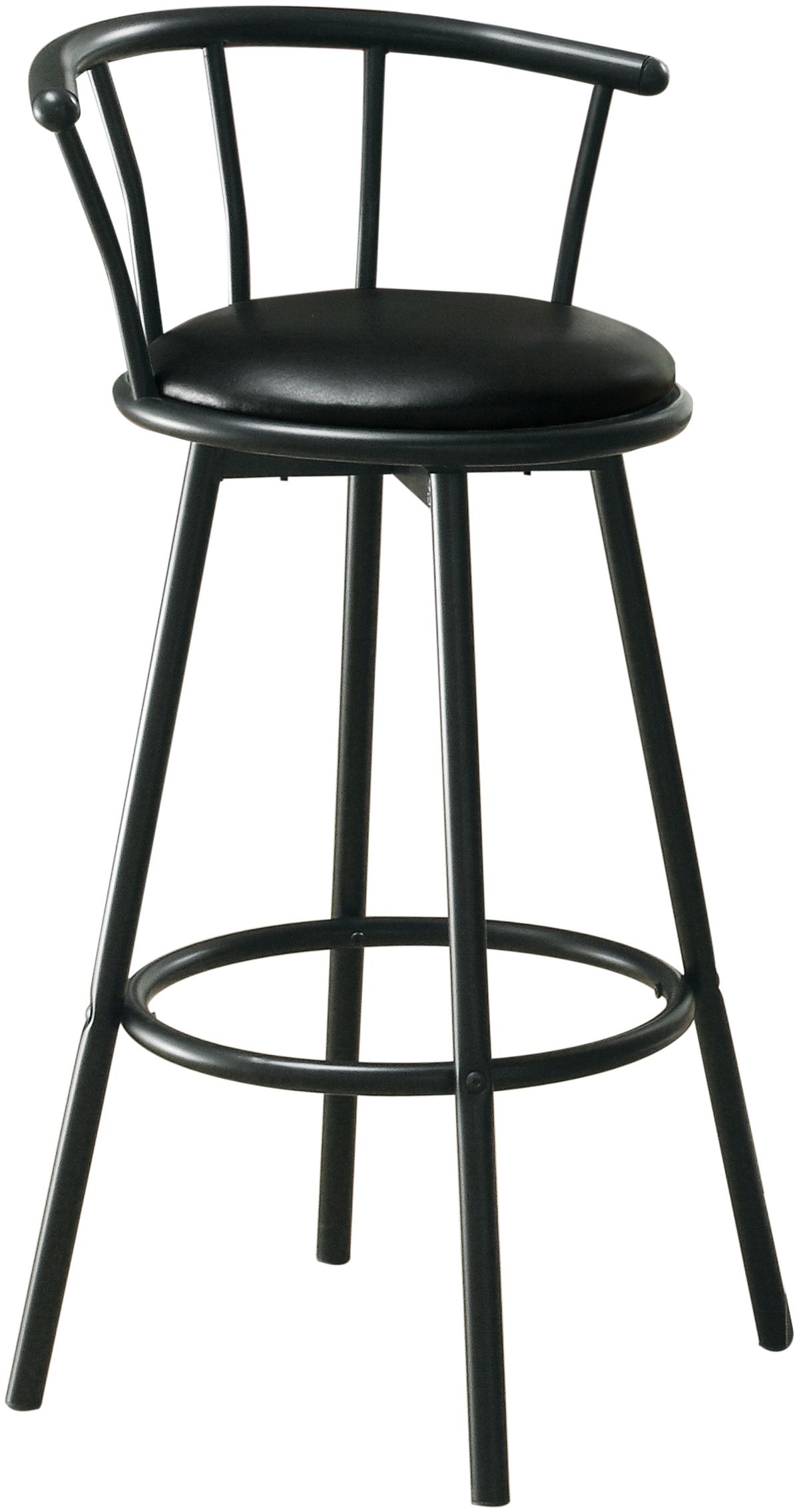 The real deal when it comes to bar stools, this is made for your kitchen against the counter or along the wall. With a curved back, the stool is equipped with a 360-degree swivel base, making your entertainment area a fun place to be for you and your guests. Upholstered in a black faux leather material with thick cushions for comfort, the black metal bases are sturdy and offer a bottom footrest bar. Bring this contemporary style to your living space - This bar chair is ready!