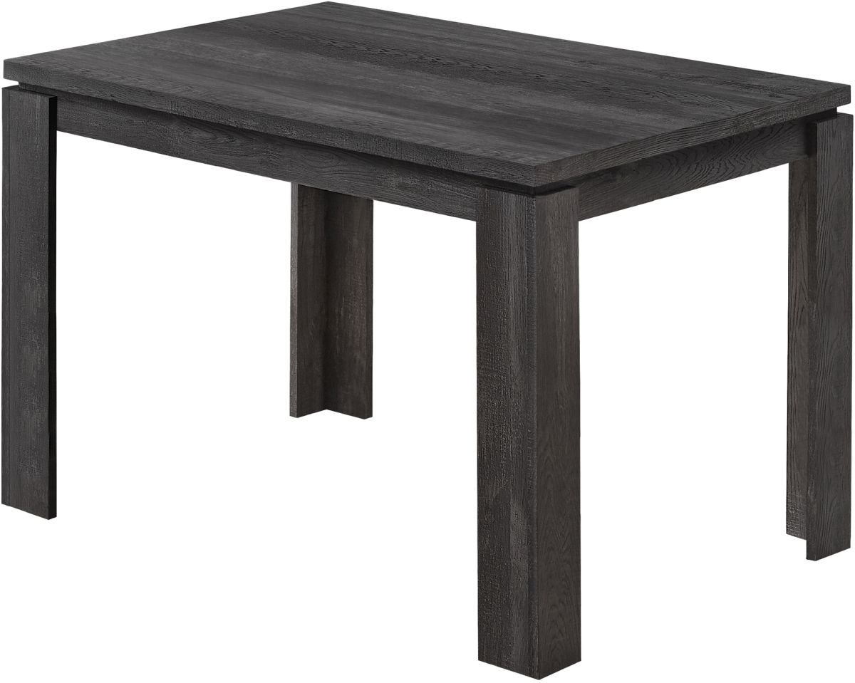 Looking for rustic? Looking for contemporary? How about both? This black wash thick-paneled kitchen table features a unique reclaimed wood surface to offer you the perfect farmhouse style for your new place. The modern dining table also features open block shaped legs to keep everything nice and sturdy. When it's time to make a statement in your home, count on this kitchen table to do the job in a casual or formal dining setting. Chairs sold separately.