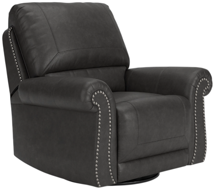Everyone can have the best seat in the house with this swivel glider recliner. Its nailhead trim puts the finishing touches on the traditional roll arms you love. The recliner's comfy, durable cushions—wrapped in a rustic yet sophisticated faux leather—keep you feeling relaxed, while its turned legs show that style and quality flow from top to bottom.Read More