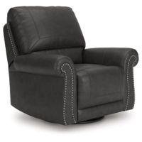 Everyone can have the best seat in the house with this swivel glider recliner. Its nailhead trim puts the finishing touches on the traditional roll arms you love. The recliner's comfy, durable cushions—wrapped in a rustic yet sophisticated faux leatherRead More