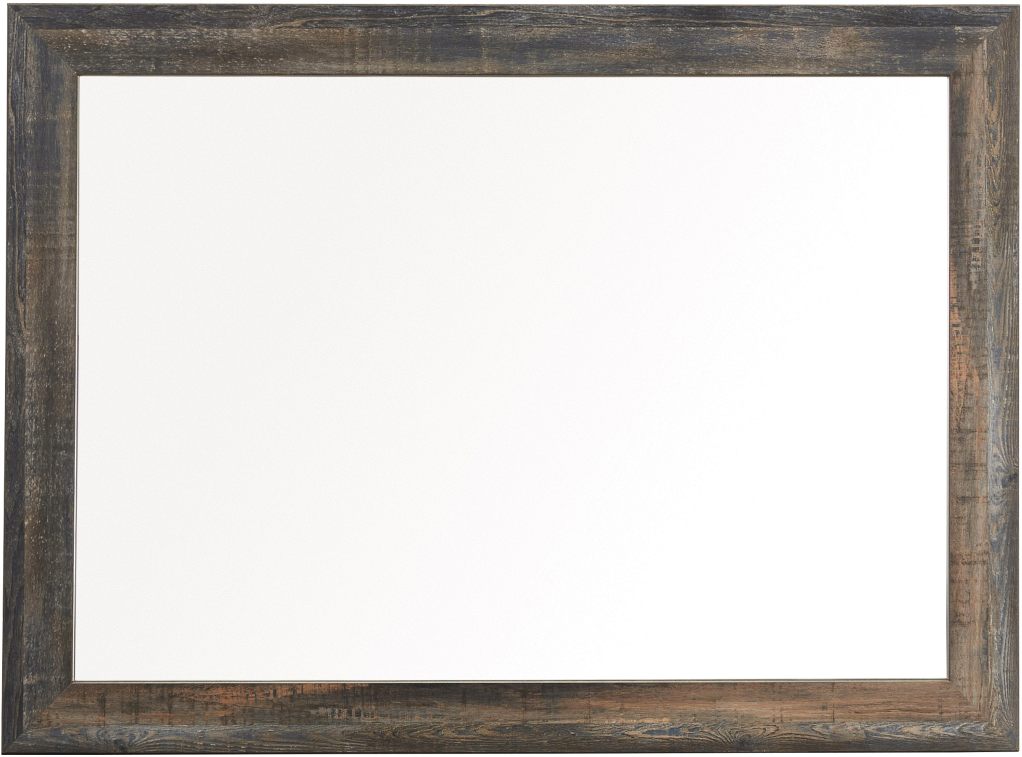 Rustic and charming, the Drystan bedroom mirror is bordered in a replicated wood grain frame and attaches to the back of the Drystan dresser.