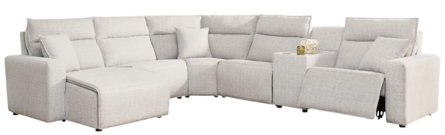 Includes 6 Modular Pieces: Left-arm facing power chaise, power armless recliner, armless chair, console, wedge and right-arm facing power recliner