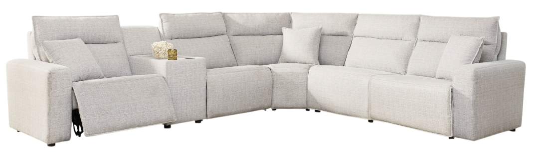 Includes 6 Modular Pieces: Left-arm facing power recliner, power armless recliner, armless chair, console, wedge and right-arm facing power recliner